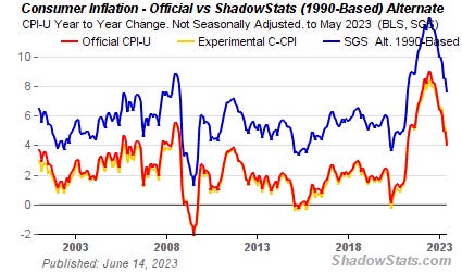 True inflation, using pre-1990 CPI methods, runs 7–8%, not the ~3% headline rate shaped by constant basket substitution. Modern CPI calculations frequently redefine both the basket of goods and how price changes are adjusted - systematically lowering reported inflation compared to pre-1990 methodology.